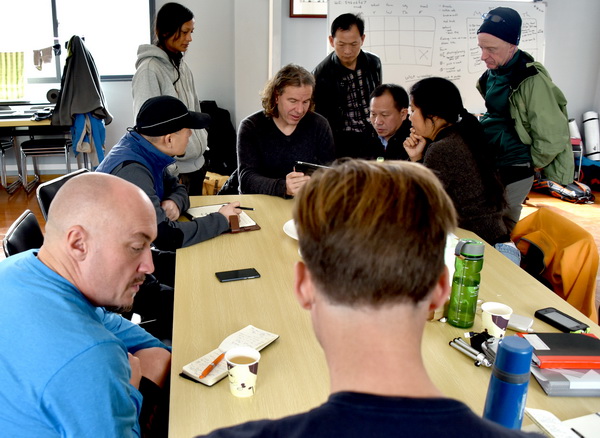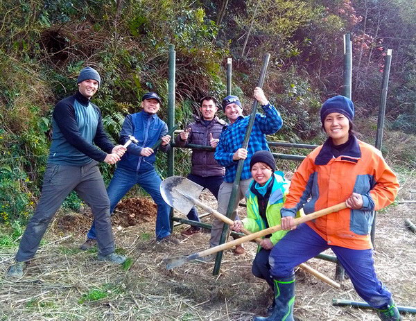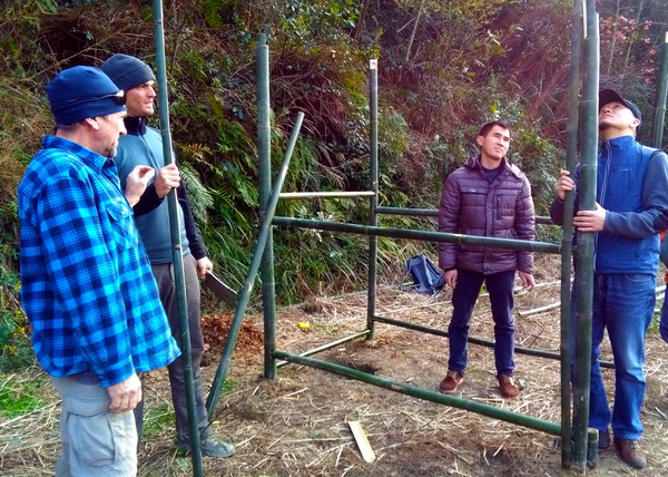 中外专家在交流搭建环保旱厕-陈孝丽摄