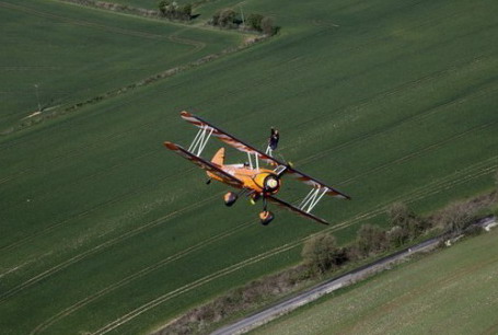 2010年4月30日,英国格洛斯特郡,53岁的基兰-萨阿(Kiran Shah)是世界上最矮的机翼行走特技表演者。