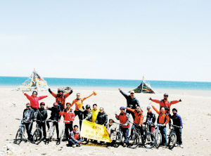 玉环风景旅游管理局副局长、浙江悍马俱乐部创建人戴伟,是这次环骑活动的发起人之一。作为资深的户外运动爱好者,他的足迹已经遍布全国各地,这次自然担当起“老驴”的角色。“这次行程一共9天时间,我们从玉环出发,包了一辆大客车,花了2天2夜时间赶到西宁,然后到当地的骑车营租了自行车,开始我们的环湖之旅。”戴伟说,他们一共花了4天时间环绕青海湖骑了一圈,行程将近400公里。