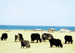 而铺在雪山和湖海之间的,是一望无际、嫩绿如茵的大草原。从山脚下一直伸展到湖畔,天衣无缝,绒软如毯。点缀其间的,有白若云朵的山羊,黑似珍珠的牦牛。当夕阳西下,牦牛金黄,山羊雪白,它们徜徉在青山绿水间,无忧无虑地或啃草,或打盹,一派祥和。当身穿藏袍的牧民扬鞭策马,间或鹰隼从空中掠过,湛蓝的天空,皑皑的雪山,澄碧的湖水,嫩绿的草原,飘动的云朵,徜徉的牛羊,翱翔的候鸟,交相辉映,如诗如画,让人心旷神怡,流连忘返。