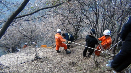 将被困者从半山腰处成功营救后,由于山路异常崎岖,加之积雪未化,下山的道路很不好走,道路只能允许一个人通过,所以由几名战士交替将被困者抬下山。天渐渐的黑了,这使救援工作加深了难度。18时50分,所有人员成功下山,官兵将被困者交给120救护人员。