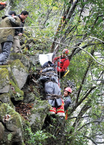 150米垂直岩壁上“运输”伤员