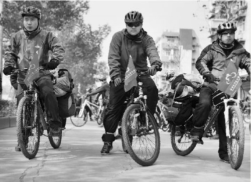 一辆自行车,几个包袱。昨日,青山自行车协会的3个小伙从武汉踏上了征途。未来一年半内,他们将骑自行车环游中国。