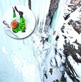 据英国《每日镜报》4月7日报道,日前,美国80后情侣萨姆·艾利亚斯和艾米丽·哈灵顿成功登顶科罗拉多大峡谷里的一个巨大冰瀑,两人未借助任何防护工具,脚蹬钉鞋、手持冰镐就爬上了近乎90度垂直的冰瀑。之前从未有人敢在科罗拉多冰瀑上如此玩命。